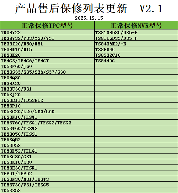 服務與支持售后維修服務售后保修型號